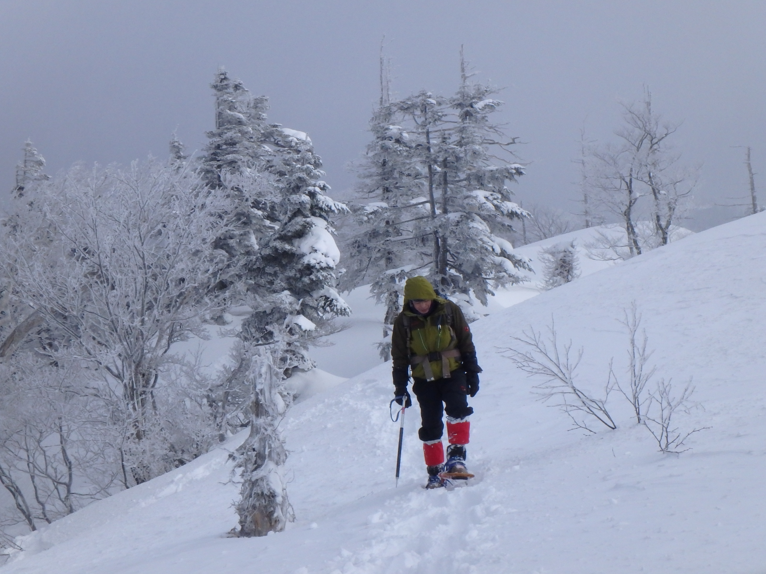 静かな雪山を味わいたくて、MKさんに企画していただいた。kHさんは、細く小柄であるが、岩も登れてラッセルも大好きという女性であり、とにかく頼もしい。偶然であるが、彼女の父方の生家の前を通過した。なんでも小さい頃は男鹿川で遊んだらしい。ネットで調べると、福島県側の大川峠方面から登る記録が多いようだ。初めての山域であり新鮮さはあったが、天候に恵まれず手強い雪山となった。