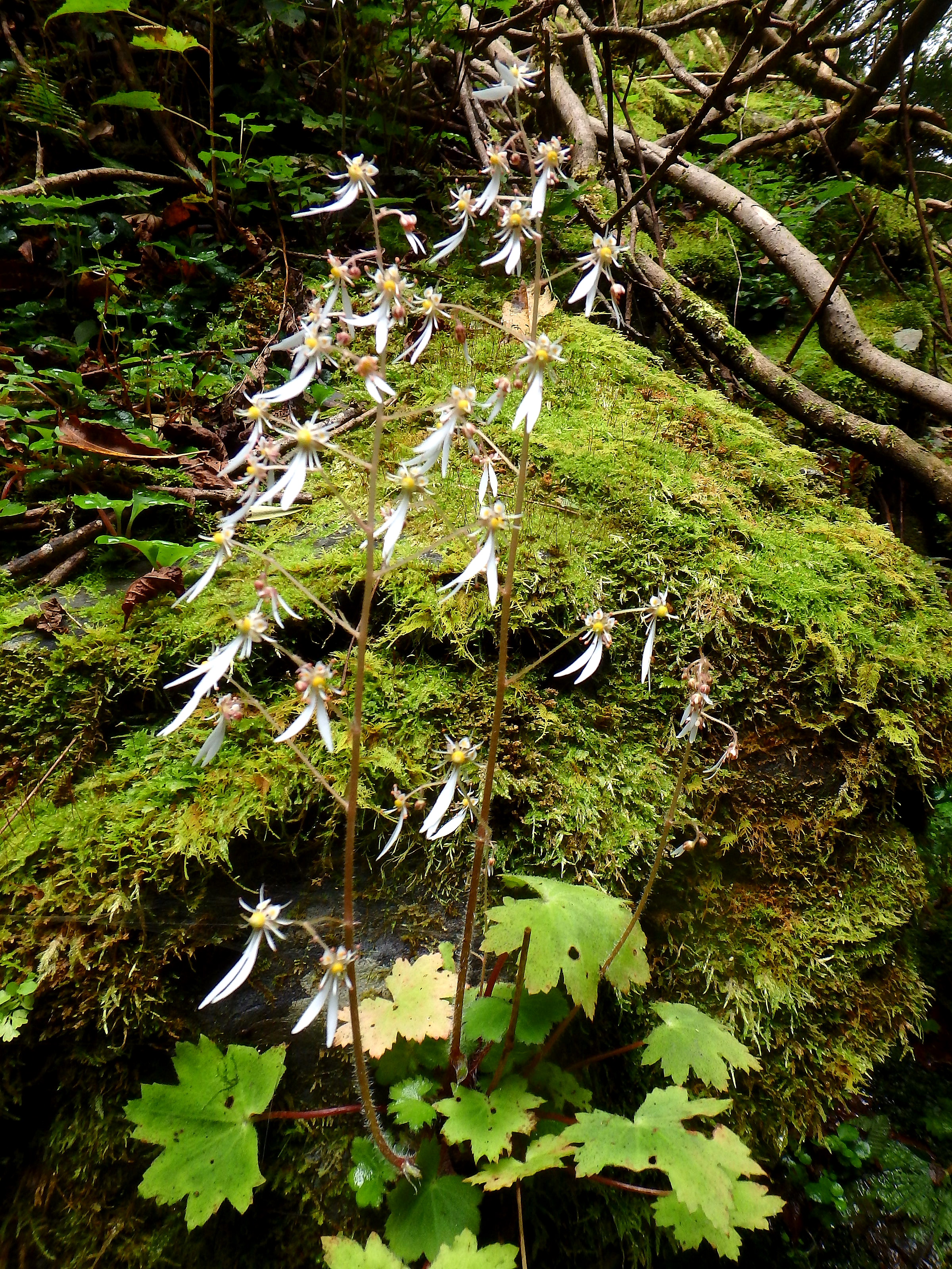 沢の詰めのようなふくらはぎにくる急な所をゼイゼイしながら登りついたところが、メシモリ岩山であった。下には林道らしきものも見えていた。