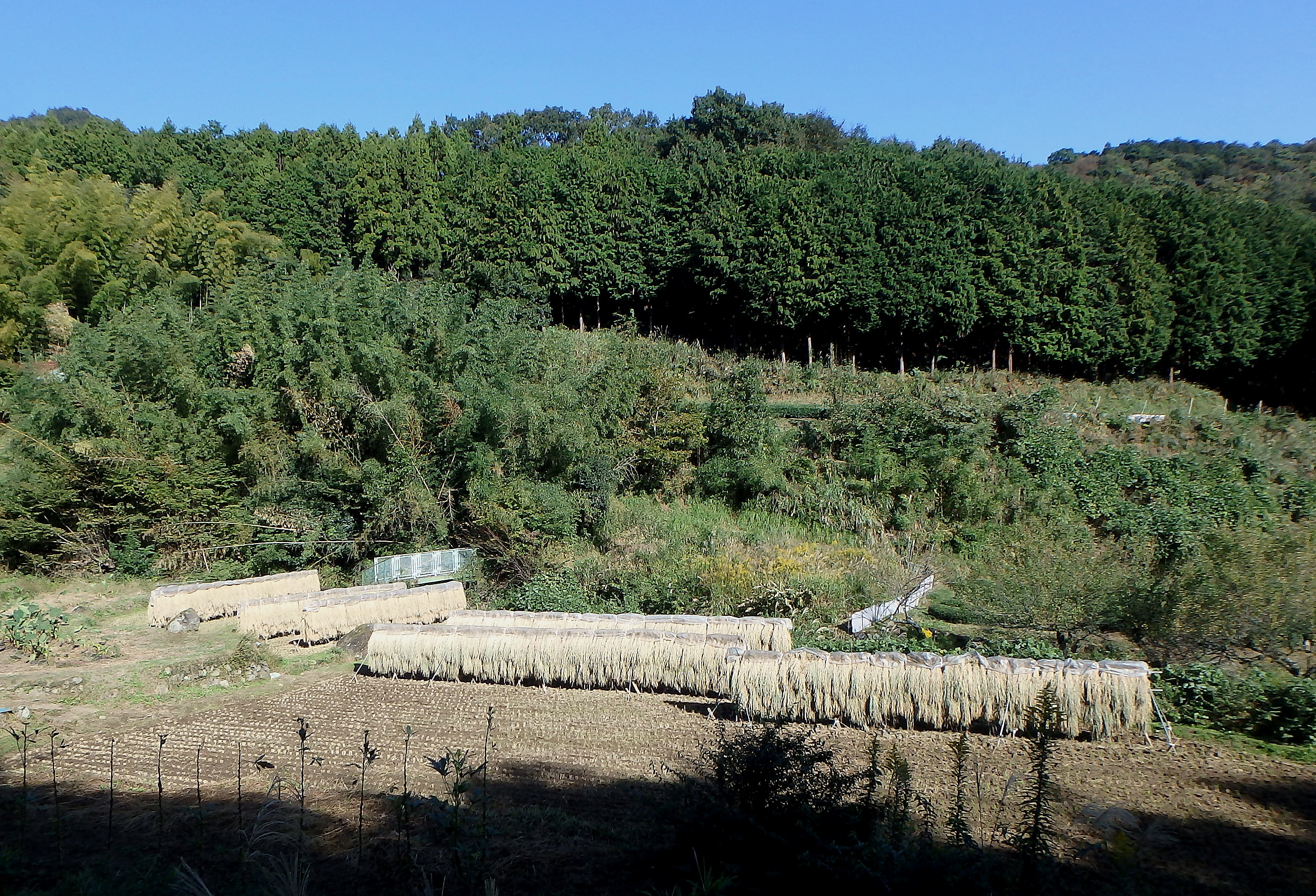 林道脇には、稲刈り後の長閑な風景が広がってます。